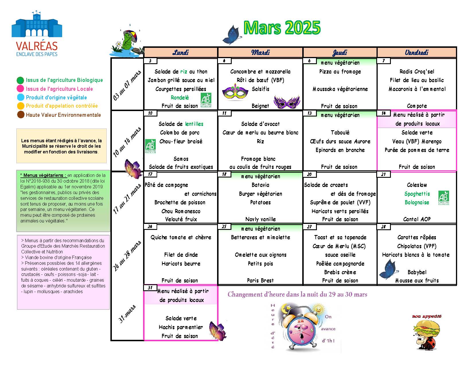 Le menu de mars au restaurant scolaire